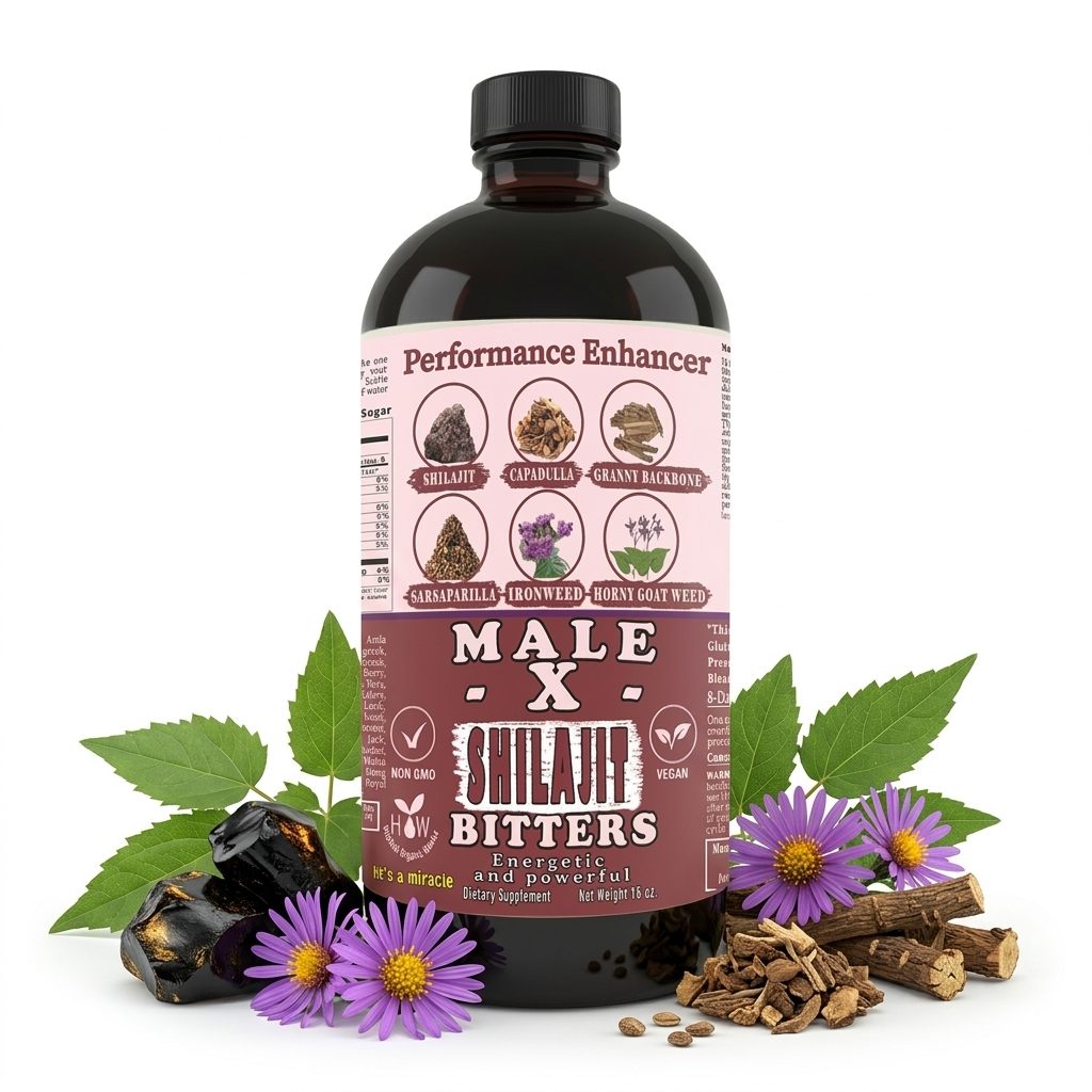 A strong herbal tonic made for men who want a more serious daily formula for energy, stamina, and overall vitality. This blend brings together shilajit with a deep mix of traditional herbs, roots, seeds, and plant extracts in one liquid bitters formula that fits into a simple daily routine. It is built for men who want something stronger than a basic capsule and easier to stay consistent with than juggling multiple separate products.