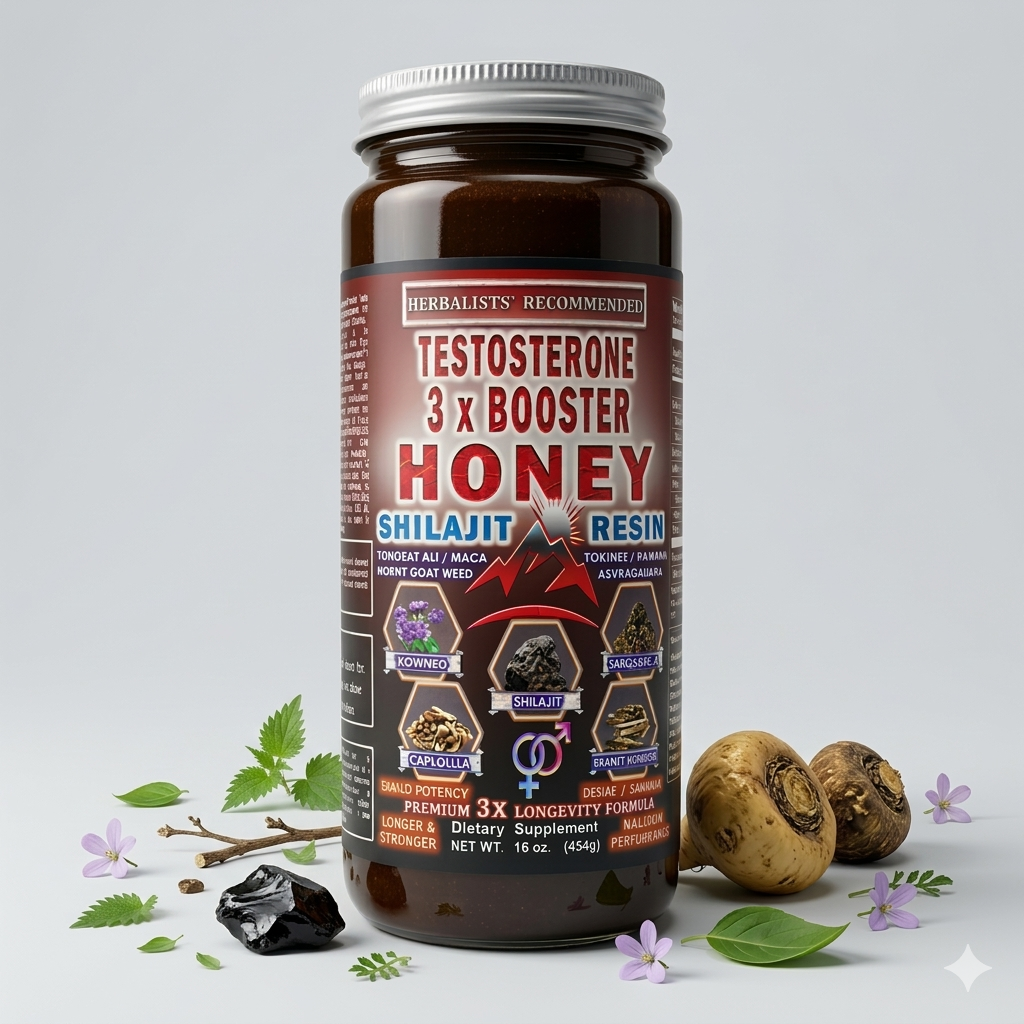 A powerful honey-based men’s wellness blend made with black seed oil, Manuka honey, shilajit, and a broad mix of traditional herbal ingredients. It is made for men who want an easy daily formula in a spoonable honey base instead of pills or powders. Clean, simple, and easy to use every day.